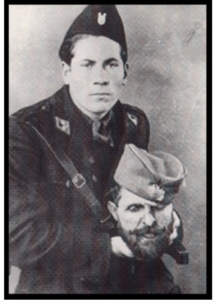 Un milite Ustasha, Petar Brzica, il re dei tagliagole del campo di concentramento di Jasenovac tiene in mano la testa di un soldato serbo