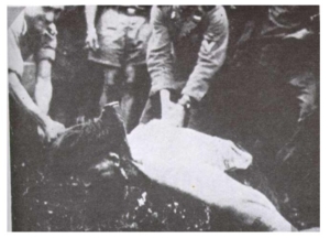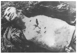 Cadavere di Milos Teslic , industriale e filantropo  serbo , di 26 anni , di Susak: fu barbaramente torturato e uccisio dagli Ustasha. Ebbe