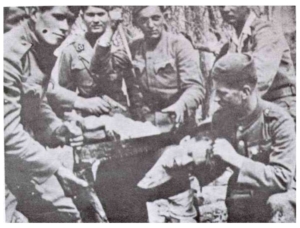 Militari italiani  e collaborazionisti MVAC portano un prigioniero al luogo della fucilazione
