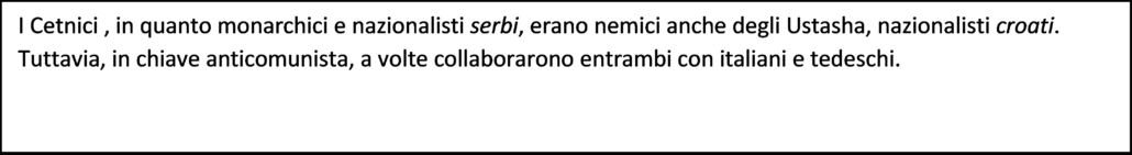 Le truppe di Tito, accaparrandosi l’equipaggiamento di ben 10 divisioni italiane abbandonate in Yugoslavia dopo l’8 Settembre, consolidarono ulteriormente la propria forza militare. Inoltre i partigiani di Tito ottennero una valido supporto da parte dei mlitari italiani confluiti dalle divisioni “Taurinense” e “Venezia” a formare la brigata partigiana “Garibaldi”. Vedasi: https://www.studiober.com/wp-content/uploads/2022/05/23-combattenti-italiani-nella-Resistenza-Jugoslava.pdf