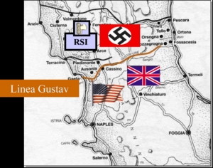 Con l’”Operazione Alarico” i tedeschi , con qualche piccolo apporto militare della neonata Repubblica Sociale, andavano ad attestarsi su una linea di difesa chiamata “Linea Gustav”, imperniata su Montecassino, riuscendo a fermare l’avanzata anglo-americana verso nord: si trattava di uno schieramento ben definito.