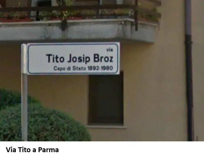 in Italia ci sono ancora oggi 12 comuni che nella loro toponomastica riportano il nome di Tito, ignorando completamente la tragedia da lui provocata contro gli italiani di Istria, Fiume e Dalmazia. Eccoli: – Aci Sant’Antonio (Catania); Campegine (Reggio Emilia); Cornaredo (Milano) ; Nuoro ; Palma di Montechiaro (Agrigento); Parete (Caserta); Parma; Quattro Castella (Reggio Emilia); Reggio Emilia; Scampitella (Avellino); Ussana (Cagliari); Verzino (Crotone)