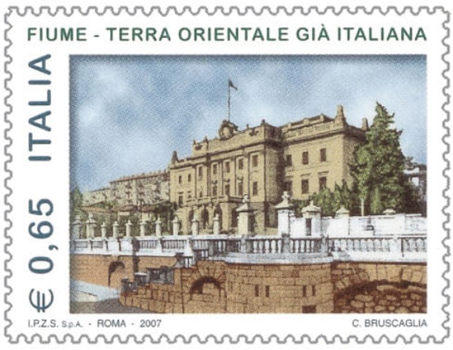 Stampato in 3,5 milioni di copie, dal valore di 0,65 € ciascuna.[1] Su di esso è raffigurato l’ex Palazzo del Governatore della città, oggi Museo marittimo e storico del litorale croato. È inoltre presente la scritta, in maiuscolo: Fiume – Terra orientale già italiana. L’emissione era stata avallata da Mario Landolfi quando ricopriva la carica di Ministro delle comunicazioni.