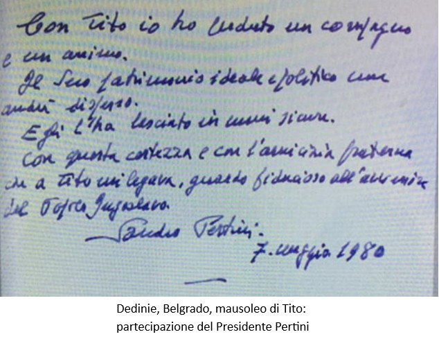 Il Presidente Sandro Pertini, in qualità di capo dello Stato, andò a Belgrado a onorare la salma di Tito, che considerava “suo fraterno amico”, ma non passò mai a visitare almeno la foiba di Basovizza, come lo avevano invitato a fare le associazioni degli esuli.
