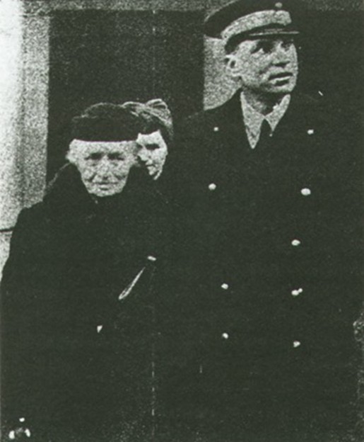 L’imbarco dei profughi sul Piroscafo “Toscana”: A Destra la Signora Sauro con il comandante. Anche la bara di Nazario Sauro, avvolta nel tricolore, lascerà Pola a bordo della motonave Toscana, in direzione Venezia, seguendo la sorte di migliaia di esuli. Riposa nel Tempio votivo (famedio) del Lido di Venezia, dedicato a tutti i Caduti della Grande Guerra.
