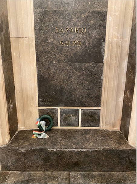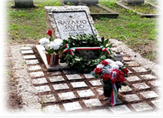 il cippo dedicato a Nazario Sauro nel Cimitero della Marina di Pola. L’esule Enzo Piro da numerosi anni, di sua iniziativa, si prende cura della manutenzione del cippo in memoria dell’eroe capodistriano