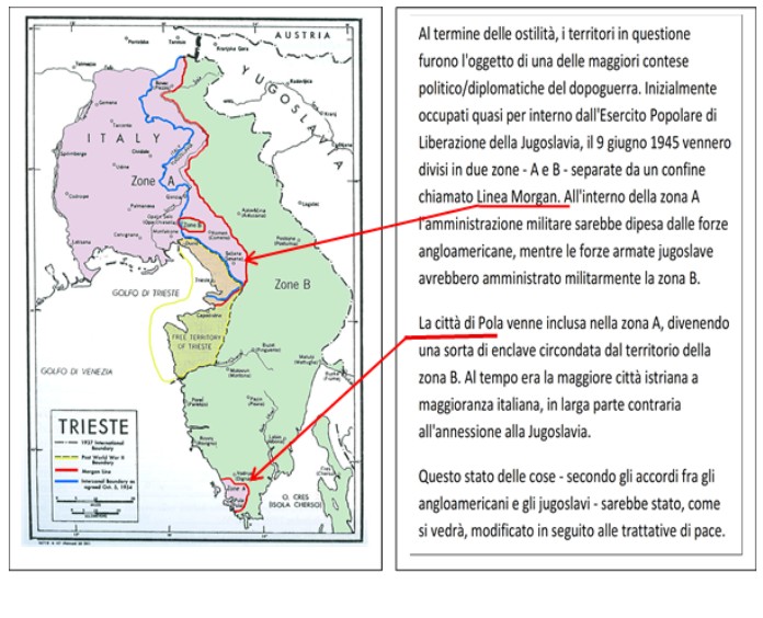 Nel 1954, in base Memorandum di Londra, l’amministrazione civile della zona A fu affidata all’Italia e quella della zona B, compresa Pola, alla Jugoslavia.