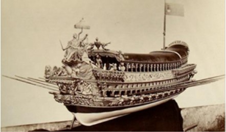 Il Bucintoro, nave simbolo della Serenissima, fu dato alle fiamme e affondato nel bacino di San Marco