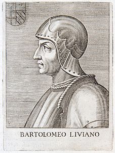 La disastrosa sconfitta dell’esercito veneto comandato da Bartolomeo D’Alviano ( o Liviano nell’immagine a destra ) ad Agnadello nel 1509 segnò l’inizio della decadenza di Venezia, anche se la guerra finì senza gravi perdite territoriali.